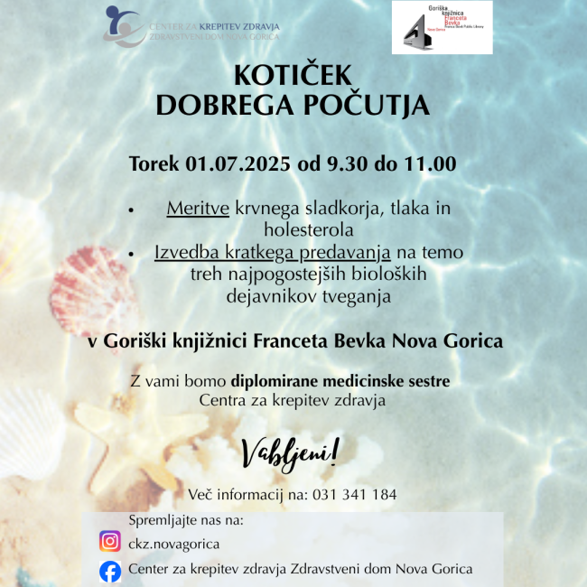Vabimo vas v "Kotiček dobrega počutja", kjer boste lahko na enem mestu poskrbeli za svoje zdravje in pridobili koristne informacije za dobro počutje.